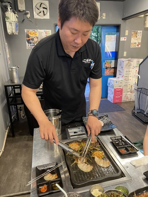 (ネギサラダ、キムチ、豆もやし、ワラビ、チシャ、ゴマの葉、ニンニク、唐辛子、サムジャン、塩ごま油)