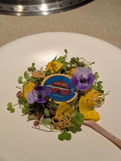 いきなり、美しく盛り付けられたキャビア&ユッケに心奪われます(ʘᴗʘ✿)焼きたてのバケットと一緒に頂けるのも嬉しい。