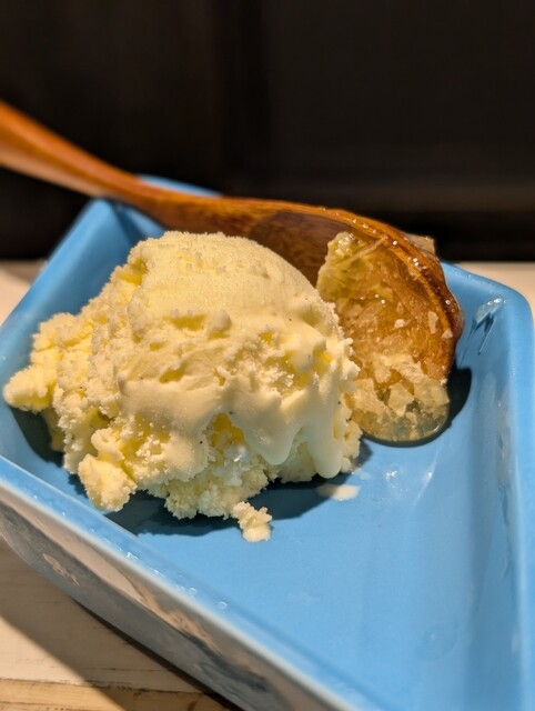 おすましはとても濃いのに雑味がなく、真っ直ぐに旨味が届く一杯でした。最後は巣箱蜂蜜の自然な甘さと、冷たいバニラアイスで締まりました。蜂蜜…いつまでも舐めてたかった笑