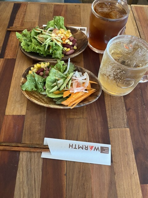 料理を頼むとサラダバーが付きます。梅ドレッシングを選びました。