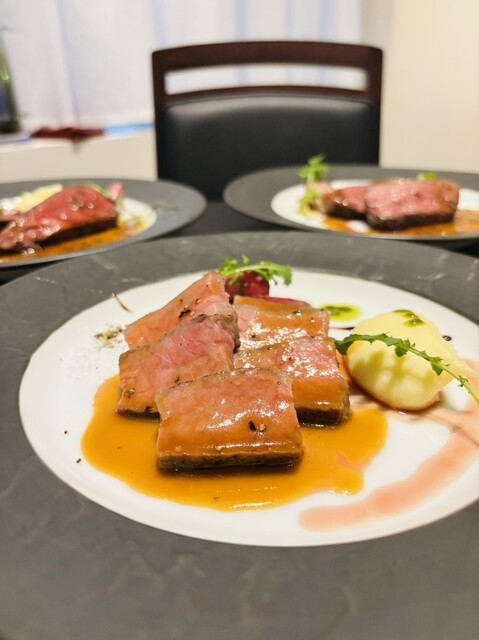 赤牛ステーキの火入れが素敵過ぎて口の中でトロけました!そしてpizzaも自家製のもちもちふっくら生地に旨味を感じながら贅沢に盛られたチーズのマルゲリータ最高です!