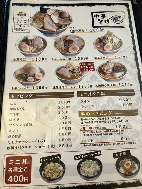 メニュー② 中華そば系も美味しそう