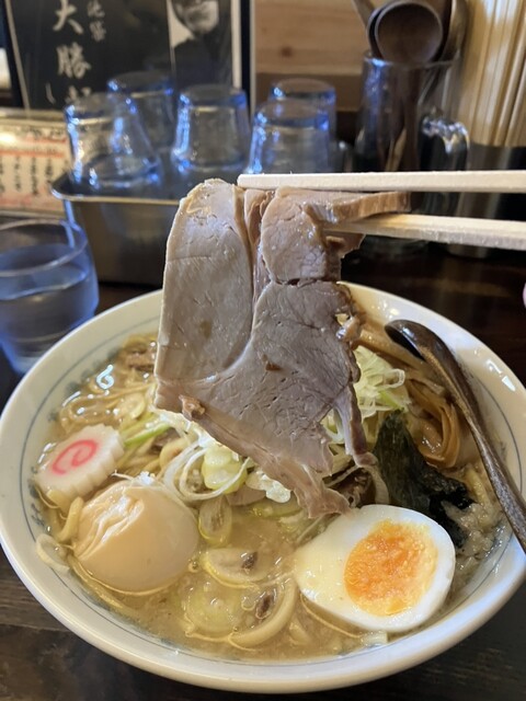 厚みこそ控えめだが、大きく、肉肉しい味わいを楽しめるチャーシュー