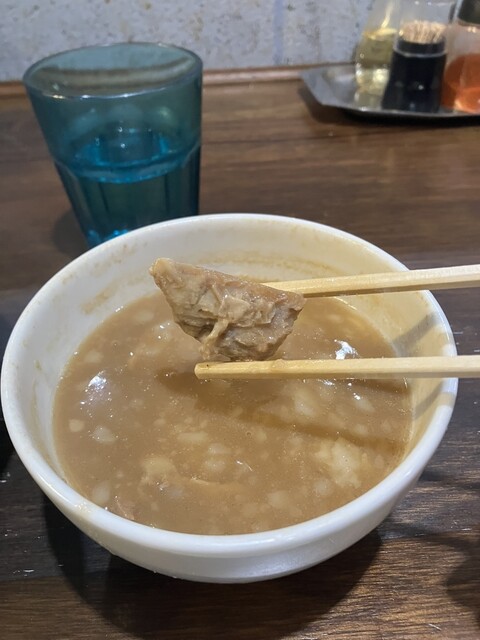 つけ汁も絶妙な塩梅で、角切りチャーシューがゴロゴロと入ってます。