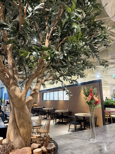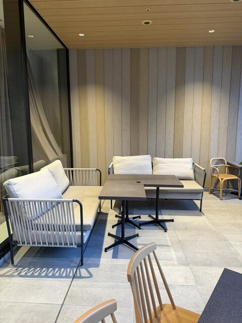 店内はとてもオシャレで、大きな木やお花が飾られて緑もあるから落ち着く✨がやがやしてないからゆったりお話もできる雰囲気も良い♡ソファ席もあるテラスは広くて、通る風が気持ちよかったです。