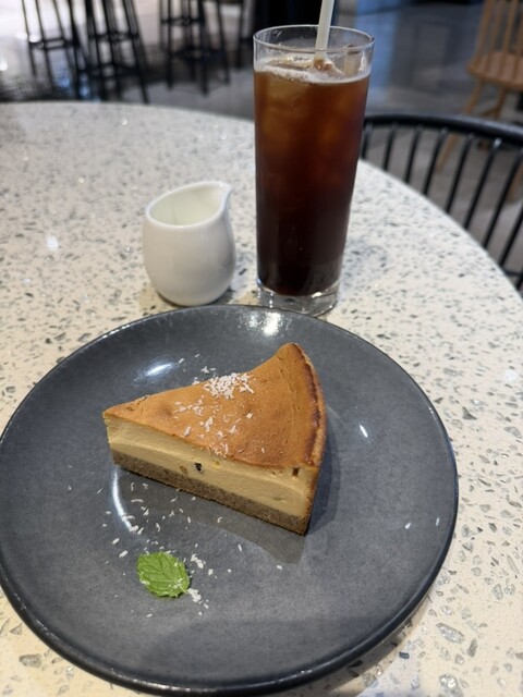 私が頼んだのはVEGANベイクドチーズケーキ動物性食品は一切使わず仕上げられたケーキは濃厚なコクとまろやかな口当たりがおいしい♡