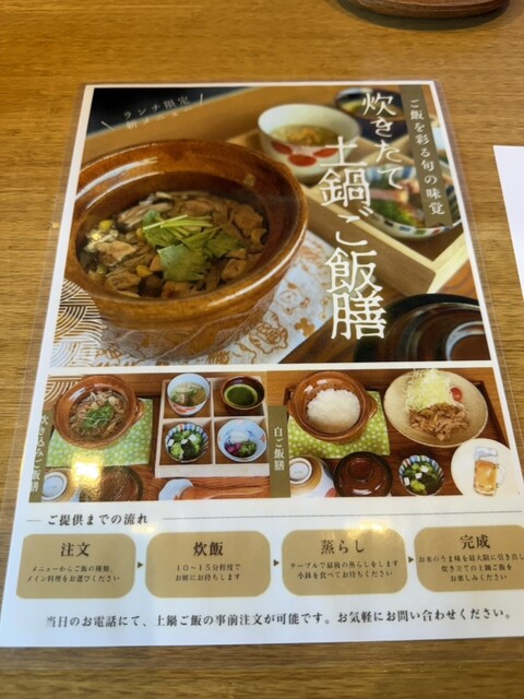 注文後10~15分ほどで炊きあがり、卓上で少しの間蒸らしていただきます。もしお急ぎの場合はお電話で先に注文していただくことも可能だそうです。