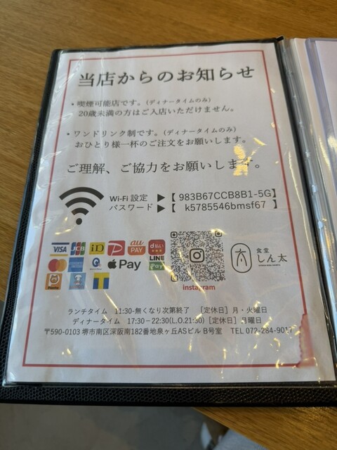 ・ディナータイムは全席喫煙可能となるためお子様入店不可