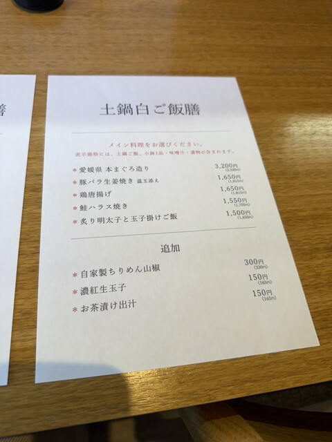 ・ランチは選べる二種類の土鍋ご飯(1650円~3520円)