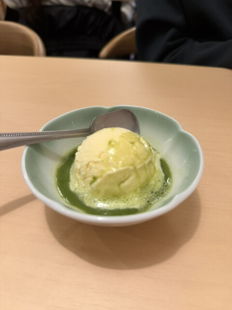 抹茶好きの息子が頼んだデザートは、抹茶をたててそれをバニラアイスにぶっかけるその名の通りのデザート!!抹茶の香りがとても良くて美味しかったです☺