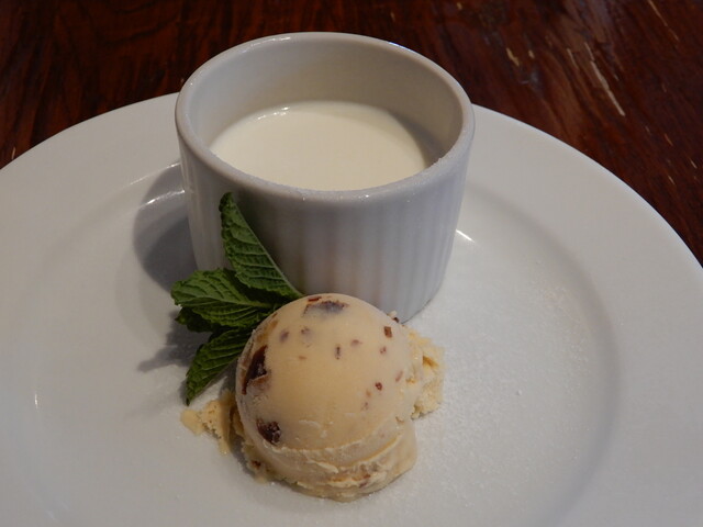 ドルチェは、助手席様がプリン、私はパンナコッタです。大きさを見て一瞬「しまった!」と思いましたが(笑)、新生姜の風味がよく香るパンナコッタは絶品で、頼んで大正解でした。本日ラムレーズンのジェラートが添えられており、その深い甘みも印象的でしたね。最後にブラックコーヒーで口を整えて終了。