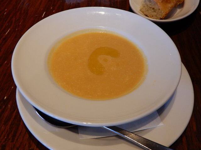 スープはバターナッツ南瓜の甘みがポタージュになって美味しい。