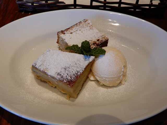 ドルチェは焼き菓子・黍糖のプリン・アイスの3種です。「いや~美味しかった、お腹いっぱい」のセリフが消し飛ぶ味で、食後のコーヒーと共にお替りができればなお良しの一皿です。焼き菓子を一切れ残して、最後にお皿を拭きとる感じで食べると悔いが残りません(笑)