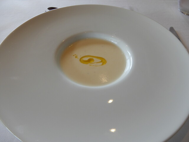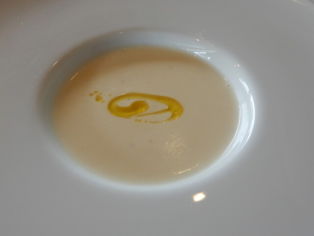 スープはカリフラワーを頼みましたが、カリフラワーの存在感と風味が生クリームとバランスよくマッチし、美味しく頂ける一品です。のちに料理が期待できてワクワクする味に仕上がっています。カボチャのスープも少し(特別無料で)味見しましたが、バター風味が香り良く「これもあり」の味でした。