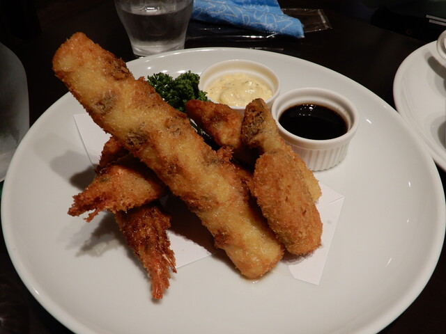 かわいいココット型に入った前菜が出るのは先週で経験済みでしたが、今週も変わらずかわいく出てきました。運ばれてくる前からいい香りがして食欲をそそられます。フリッターも揚げたてアツアツで一つ一つ美味しく頂けます。