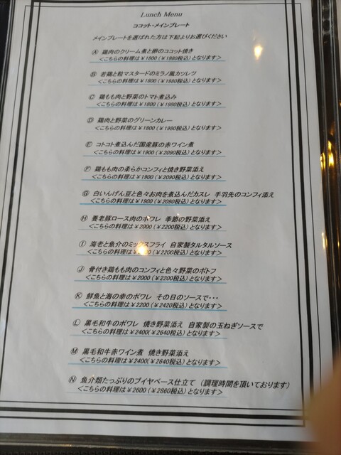 知人から美味しいと聞いていたのでのでひょっこり思い立ち、朝電話をかけると運よくカウンター席の予約が取れました。店内は町の洋食屋さんのようでお酒も充実して落ち着いた雰囲気です。夜にはバーカウンターになる席に案内され、助手席様はイチオシの「12種の小さなココットプレート」、私は「ココットのメインプレート」でメインを「ミラノ風チキンカツレツ」にしました。店内を眺めるとお酒は本格バーに近い品ぞろえで、アイラモルトやサントリーのシングルモルトはもちろん、珍しいピスコポルトンまでおいてあります。