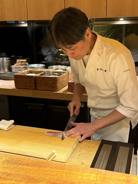 今夜は賛否両論名古屋店のオープン10周年イベントにお声かけいただきました。ドリンクもそれに合わせたスペシャルセレクトで私はワインリストでフェラーリオマージュのスパークリングから白も赤も順番に全ていただきました。特に赤は賛否両論オリジナルでスペイン北部クネ産で2015年ものでよくこの豊潤さが出せたなぁという絶品でした。笠原将弘マスターにお仕事中のお写真お撮りしてもいいですかとお尋ねしたところ「何百枚でも撮っちゃってください」と快くOKいただきましたのでアップします。
