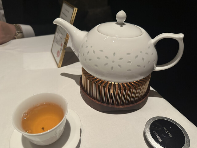 こちらは伊万里焼のお皿に載せられてせいろ蒸しで出されますが干しアワビの戻しソースが良いアクセントとなっていてとにかく海老がぷりぷりで美味しかったです!
