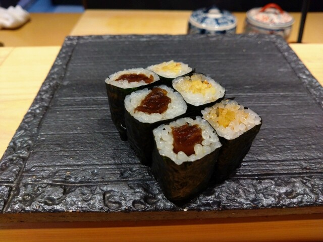 昼は二回行ったけど、二回とも食べたことない激ウマネタが出てきた。また、昼に出てきたノドグロの手巻きも激ウマ。ちょっとだけ入ってるカンピョウ意味ある?って思ったけど、絶妙な分量で、素晴らしいアクセントになってて感動した。