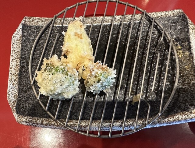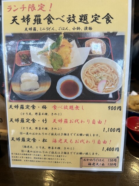 お好み定食(中ご飯)1090円を注文。白身、海老、豚、イカ、野菜3点(ピーマン、ナス、かぼちゃ)。特に海老が大きくプリプリで食べごたえあって◎。もやしのピリ辛和え、柚子大根漬物、食べ放題。以前はイカの...