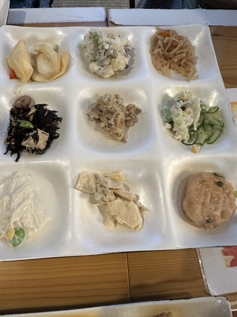大人2200円(税込)。ラッキーな事に、テーブル席の料理が並んでいる所に案内。ご飯類だけでも白ご飯、麦ご飯、混ぜご飯あり。ご飯のためのカレー、生卵、とろろもあり。梅の花の定番の湯葉、豆腐焼売、生麩田楽、湯葉揚げなどはじめ、サラダ、天ぷら、唐揚げ、蓮根饅頭、デザートなど多種類あり全種類制覇できず。ドリンクもホット3種類コールド7~8種類その中に飲む酢2種類あって充実。今回全種類制覇できなかったことやどれも美味しかったので、改めてまた行きたいお店になりました。
