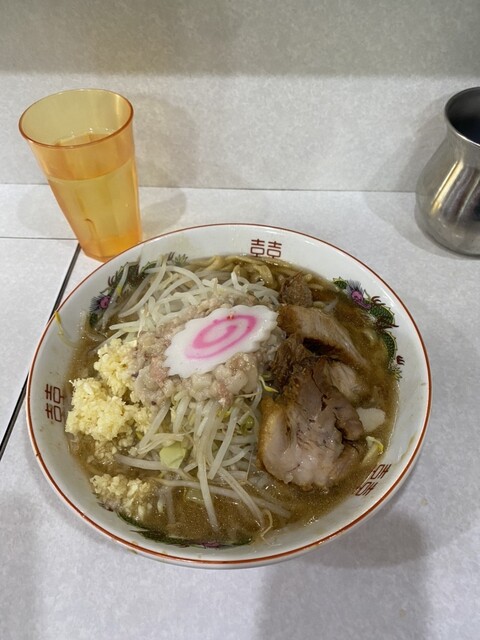 今回は豚麺です。野菜少なめ、麺少なめ脂普通でニンニク多めdeath