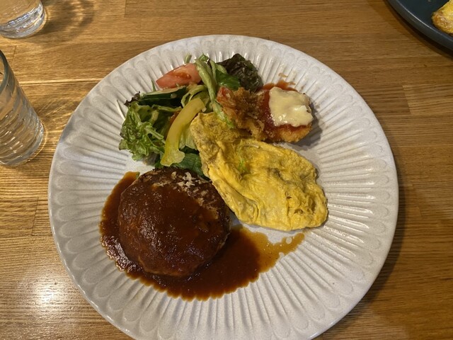 私はハンバーグに牛肉の生姜焼きやフライに満足です。2人ともいりこ出汁の味噌汁が美味しいねと笑顔になってました。