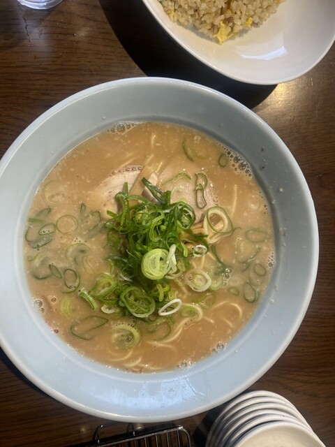 ストレート細麺で濃いめの醤油豚骨スープです。