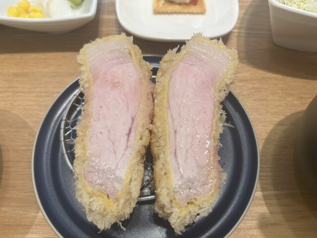 低音で揚げたのに、衣が軽くサクサクでしかも細かい、全然今までのとんかつとは違います。