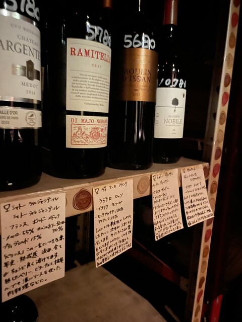 総評どの料理もワインとの相性が抜群の味付けで調理されておりワイン好きが最高に満足できるレストランだと感じた。メインはボリュームがある割に値段はそこまで高くなく、コスパの良さも感じる。また、ワインの選び方も自分で地下倉庫から選んでくるなどと遊び心があり、楽しかった。