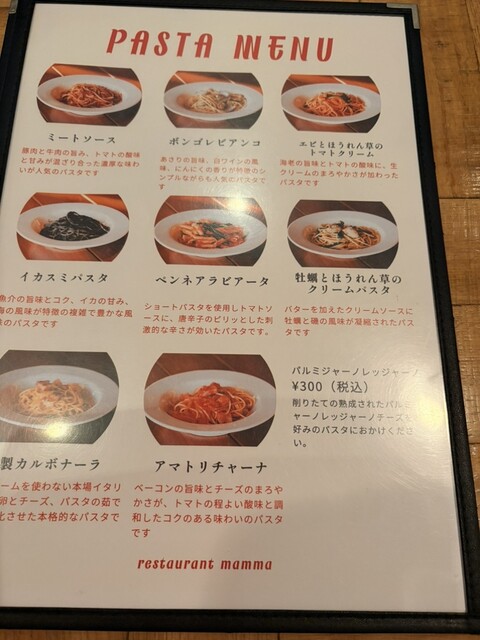 パスタは8種類から選択出来ます。