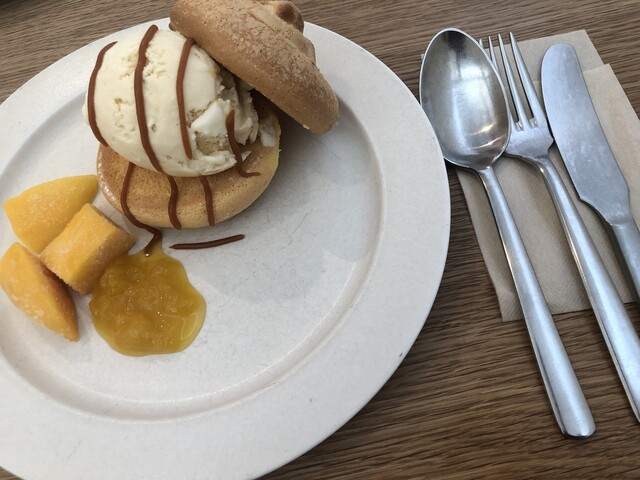 店内だとシフォンケーキには生クリームとベリーソースとアイスをトッピング