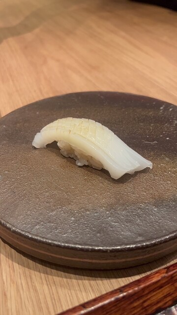 握りにおいても、平目、海老、サヨリ、蝦蛄、鱚、ヒラマサ、雲丹、イクラ、鰆、煮穴子、鮪の漬け、太刀魚など、旬の素材が次々と供されます。シャリは人肌で、口の中でホロリとほどけ、ネタとの一体感が素晴らしいです。特に、太刀魚にオリーブオイルを付け、炭火で炙ったものは、塩と一味が絶妙に効いており、太刀魚の甘みを引き立てています。