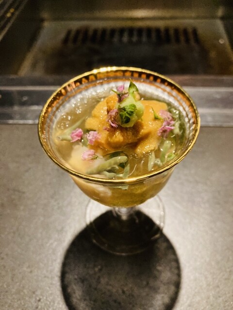 瑞々しい新玉ねぎの甘みを引き出した優しいすり流しに、濃厚なウニの旨みが重なり、春らしい軽やかさと贅沢さを同時に楽しめる一品❗️