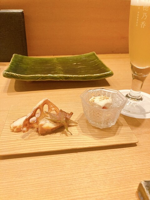 絶妙な火入れで中心はレア!塩とわさびで素材の繊細な甘みを引き出す❗️
