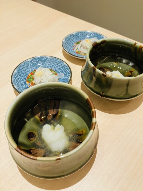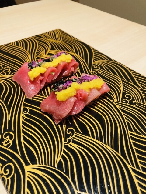 なめらかな和牛ユッケの甘みと、本鮪の濃厚な旨味が重なり合う贅沢な口当たり❗️とろたくの食感と香りがアクセントとなり、コースの幕開けにふさわしい一品❗️