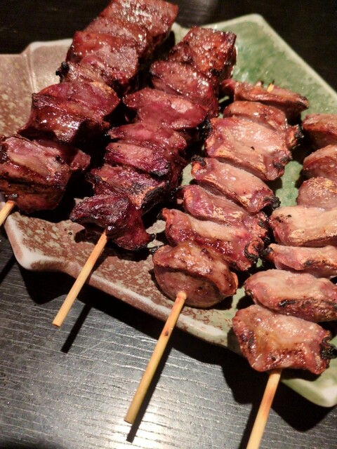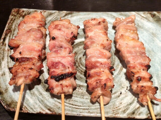 途中、頼んでない豚バラ串が届き、頼んでないとスタッフさんに伝えると、「間違ってしまったようです。どうぞ、お召し上がり下さい」と。あら、ありがとうございます。