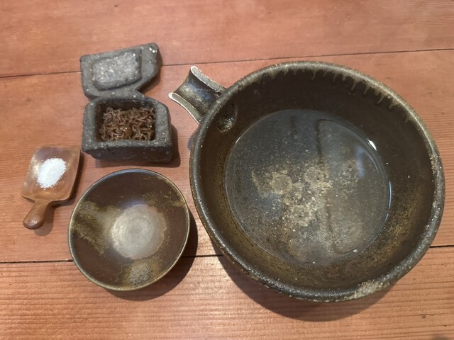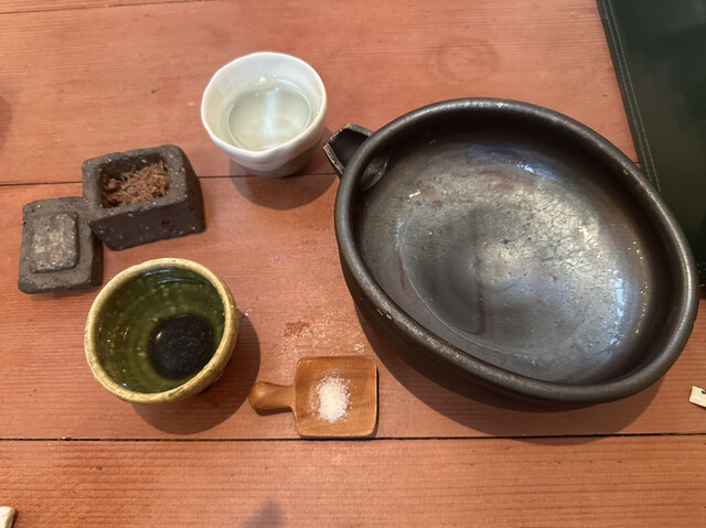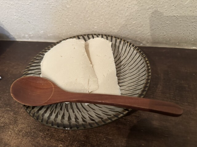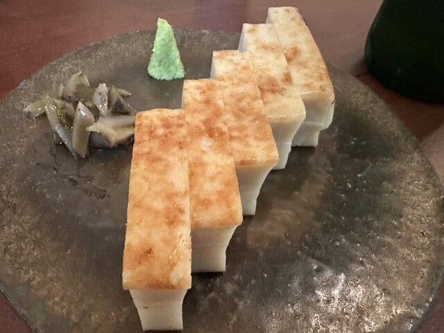 焼き味噌は、穀物、薬味が絶妙にブレンドされていて、香ばしさもあり、さっぱりとする焼酎に良く合います。舌触りの良い濃厚豆腐は、荏胡麻油と醤油で頂き、その他アテをちびりとやりながら、焼酎を5杯程頂きました。