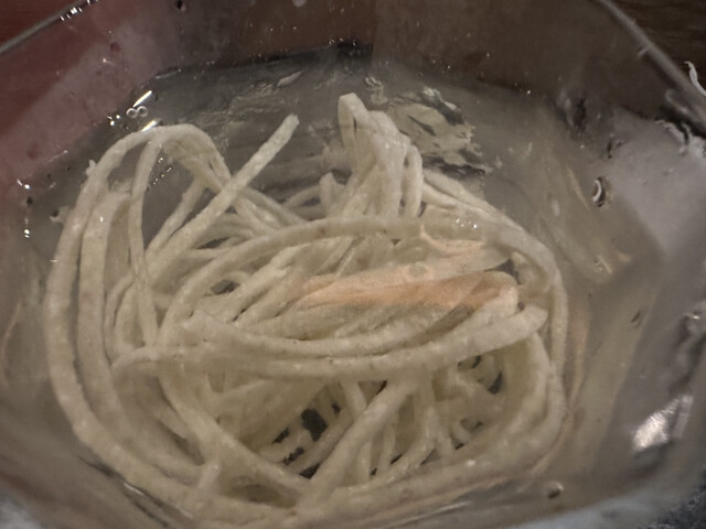 この日は塾生させた粉に香りのある蕎麦粉をブレンドしたのか、旨味の後に香りが鼻腔から抜けて行く上質な蕎麦粉の様に感じました。