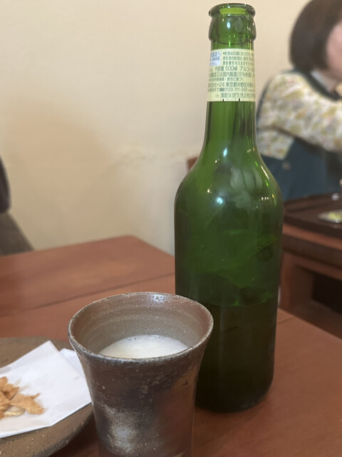 とりあえずビールと、なごり雪(濃厚豆富)、卵焼き、粗挽きを一枚注文。