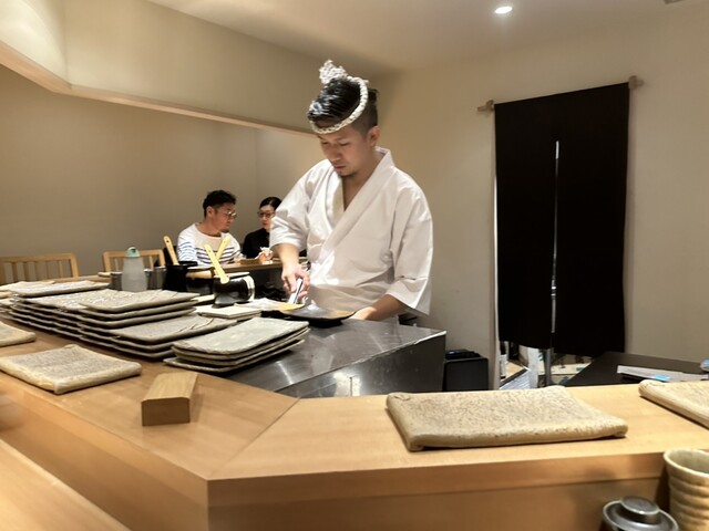 17:30の予約で先客は3組、奥の方の手元が見れる席に案内して頂きました。