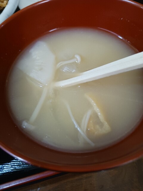 大根、玉葱、エノキ茸、油揚の白味噌仕立て。