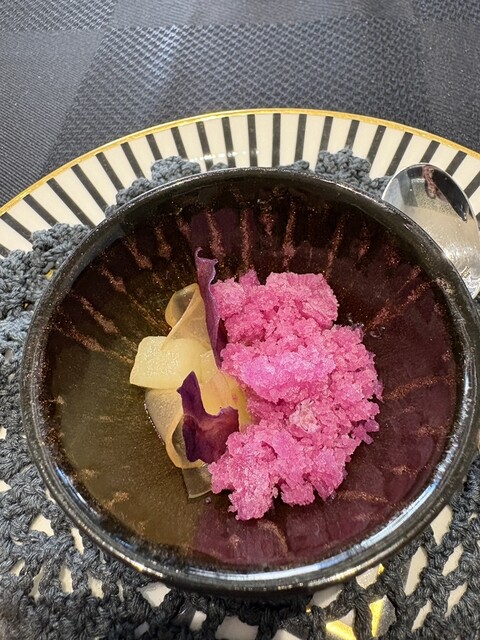 お料理は、美味しいものがコースで沢山出されて満足しました☺️。期間限定の梅ジュースを頼んだのですが、少しスパイシーな味付けが美味しすぎて忘れられません。←ということで、来来週の予約をとりました。毎月メニューが変わるとの事でしたので、来月も楽しみです。梅ドリンクもまだありますように☺️。初訪問の初見の客な私たちなのに、シェフが挨拶に来てくださり、お見送りもしてくれたので嬉しかったです。こまめに行きたいと思いました☺️。