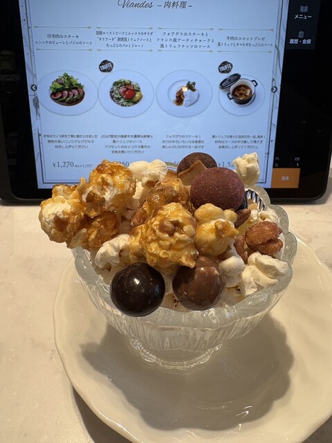 久しぶりに食べたいな、と思ってたフォアグラがリーズナブルなお値段で美味しかったし、ポルチーニ茸のクリームソースがたっぷりかかった大根も美味しかったです。テーブルチャージが270円かかりますが、それ用の付け合わせのアレンジポップコーンも美味しかったので次は友人と来たいと思います(フォアグラステーキ1人で食べるには多すぎた(^◇^;))。