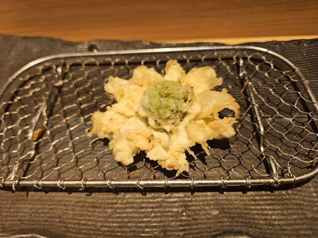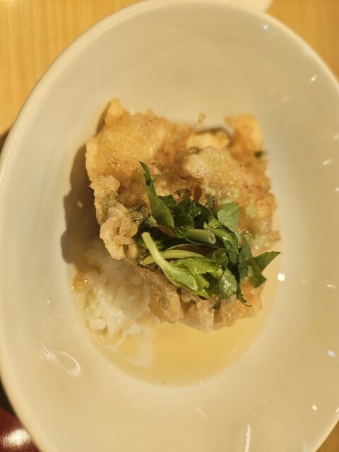 サクサクかき揚げにワサビ入れて出汁割り。軽くいただけます✨