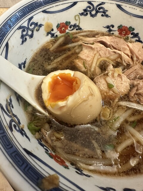 スープは、黒くて醤油が強いのかな?思ったけろ、竹岡式のような強さはないです。甘味のある醤油の味と薬膳の風味を感じるスープが、これまた美味しく、飲み干しちゃいそうな勢いです。過去一で好きな醤油味です(⸝⸝› з ‹⸝⸝)♡