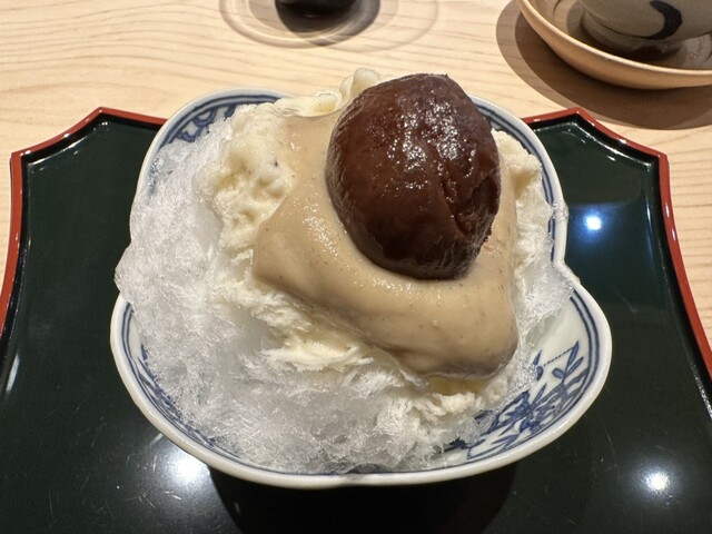 今日も初夏の豪華食材のラインナップ頂いたのはトリ貝と赤芽の純菜の酢の物、海鼠腸の飯蒸し、京丹後の赤貝とトリ貝、鮑の星(貝柱部分)の造り、軽く炙ったトリ貝、鮑とワカメしゃぶ、八寸は穴子巻き、青梅、瓜、蛸の柔らか煮でした。炙りの近江牛のシャトーブリアン、鮎魚女の稚魚の一夜干し、名物の半田麺は揚げ玉と雲丹とキャビアに麺汁和え、飛龍頭、佐渡鮪の赤身と大トロの造り、鳴瀬川の稚鮎、紫と馬糞雲丹の小丼には烏骨鶏の卵、リクエストの中村農場の目玉焼き、白米、玉蜀黍の土鍋を頂きデザートのプリンと小豆のかき氷を平らげました。この夜も高級食材の贅沢で楽しい会食でした。