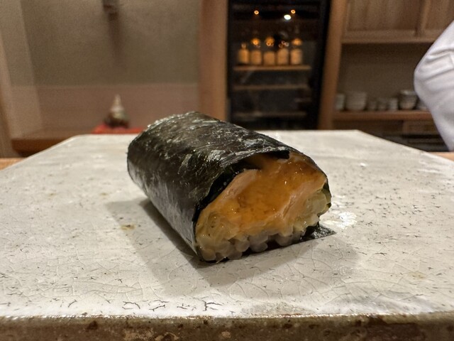 握りも細魚、フジタ鮪は別格、肝付き皮剥などが舌を唸らせてくれました。〆のクメールラビットハニーの玉も鮨店の玉の領域を超越してます。