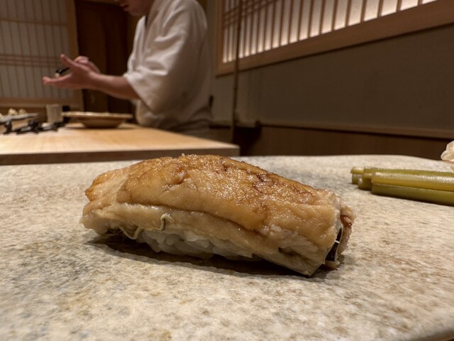 彼の堂々とした所作と握りのフォルムは親方譲りで素晴らしかった。しいて言えば大将の独特の空気の入れ方による口の中の広がり方とトークには余地があるかな?