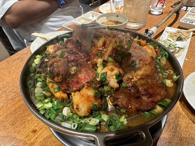 頂いたのは飛騨牛タレサーロイン、S級ハラミ、特選サンカクバラ、極上厚切り黒タン、薄切りクロタン、ナムル、キムチ、せん切りキャベツはオーナーからのサービス、大好きな名物の色んなホルモンのごちゃ混ぜ焼きと白ご飯、〆の絶品冷麺を生マッコリと麦焼酎発祥の地壱岐の麦焼酎の猿川(サルコー)で存分に頂き社員達も大満足です。